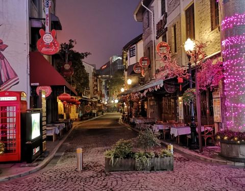 老外滩如同上海外滩一样,也有许多老房子,在以前这里也是外国人居住的地方,这一片面积不算太大,晚上很热闹,开了许多酒吧,不少在宁波的老外晚上来这边喝酒聊天,酒吧里灯光通明,歌声飘荡,不过客人并不算多。