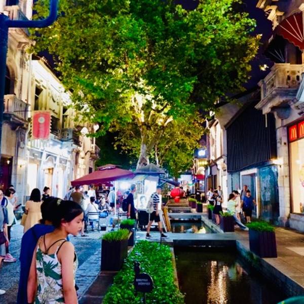 南宋御街的建筑有些西方的风格。走在街上,特别休闲,流水潺潺。夜晚的御街,也特别热闹。南宋御街,美食街,还有河坊街这几个景点都非常靠近。