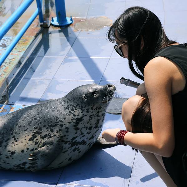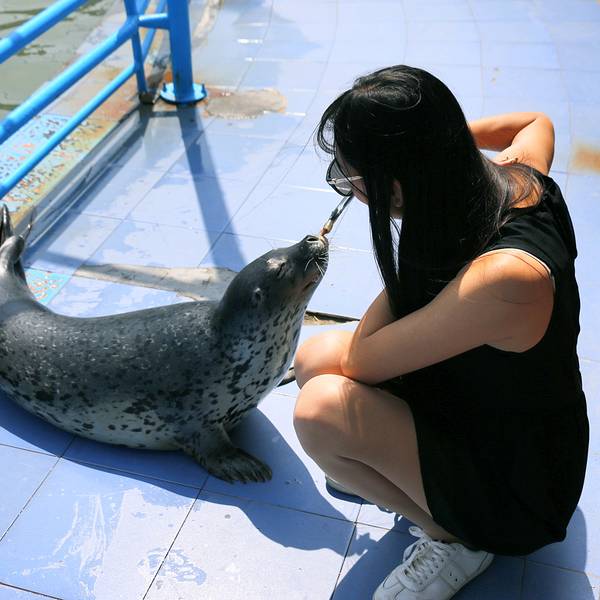 月亮湾公园是长岛最有特色的天然海水浴场,源于公园里拥有全国罕见的砾石滩,海滩上不是沙子,是被海水磨得滚圆的砾石,5月的时节,阳光不算太毒辣,赤脚(最好还是穿上袜子吧)走在石滩上,还挺惬意的。特别说明下哈,这里的石头是受保护的,不能揣回家,所以如果真的喜欢就拍点儿照片吧,石头还是让他们安静的躺在属于自己的地方吧。5月的阳光,还没到烈日炎炎的地步,海风也是恰好的和煦,空气中带着一丝淡淡的咸味。月亮湾还有个海豹乐园,是可以喂食海豹的,果断买了小鱼干放我们进去喂食+拍照。端着小盆盆儿进到园子里,嗅觉灵敏的小家伙儿就瞬间钻上来了!此时此刻千万要拿好小鱼干,不然分分钟被海豹突击队包围,胆小的会吓得小盆盆儿都端不住哦~ 展开