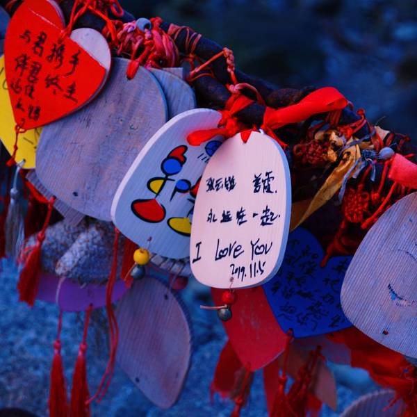我随手拍的照片,没有改的很沉重的色调,看上去也是别样的感觉~月亮湾内有一条海边的许愿路,全是小情侣在这挂的牌子