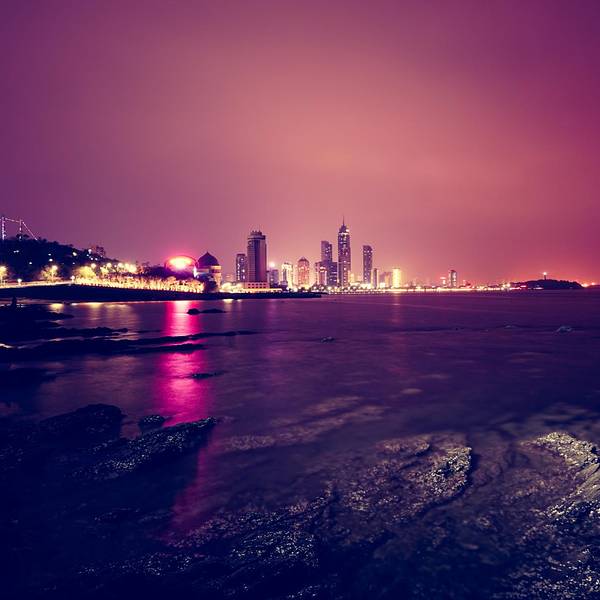 (虽然出门的时候,外面乌...🔺滨海城市烟台的夜景🔺最风大的可以吹走人的日子里,我作死的去了海边的月亮湾,听说这里的夜景不错