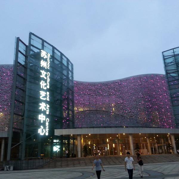 苏州文化艺术中心位于苏州工业园区的湖东。建筑设计独特,有人说是苏州鸟巢苏州文化艺术中心位于苏州工业园区的湖东。建筑设计独特,有人说是苏州鸟巢。位置很好,距离月光码头不远,面对金鸡湖,晚上亮灯时很漂亮。