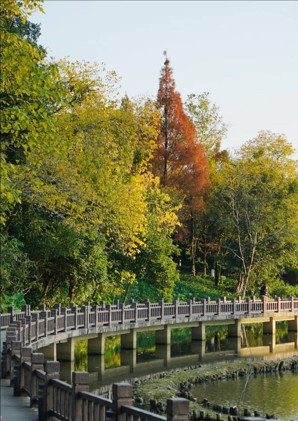 仓山区的流花溪畔,藏着福州城南最温润的诗意——金山公园。沿溪而建的它,没有闹市的喧嚣,也无名园的盛名,却以一水绕三景的雅致、四季轮转的鲜活,成了本地人私藏的休闲角落。趁一个晴好的午后,我踏入这片生态绿洲,顺着亲水栈道缓缓走,看水映桥影、树绕芳洲,在一步一景里,邂逅福州独有的江南温柔。 入园便遇悠然景致,青石板路蜿蜒向前,抚山居就立在洪湾河畔,青瓦黛墙的中式建筑风骨,糅着几分简约的造景巧思,飞檐映着碧波,廊下清风穿堂,瞬间抚平心头的浮躁。这座临水而建的建筑,不只是休憩的亭台,更是公园的文化一隅,闲来可在此品茗观水,偶尔还能遇上本土文化分享,闽地的风土与故事,都在这一方小园里娓娓道来。往前走,荷花坞的木栈道探入水面,这是金山公园最具代表性的景致,大片荷塘铺展在眼前,哪怕非盛夏,残荷疏影映着碧水,也别有一番清寂之美;待六月盛夏,数十个品种的荷花次第绽放,粉白嫣红绕着栈道,荷叶高过人头,走在其中便成“人在荷间走,香随清风来”的诗意,蜻蜓点水、白鹭掠波,皆是灵动的画面。 顺着流花溪往深处走,便到了“雁行芳洲”,这是公园最具野趣的角落。亲水栈道依着河岸曲折延伸,脚下是清澈的溪水,身旁是摇曳的芦苇,偶尔可见水鸟掠过水面,在雁子矶的茅草亭稍作停留,听溪水叮咚,看对岸的绿树浓荫,时光都慢了下来。这里的美,藏在自然的野趣里,没有刻意的雕琢,只有水草丰茂、鸟雀相鸣,随手一拍,都是原生态的自然画卷。再往前行,“洪湾垅翠”的绿意扑面而来,紫玉兰、红枫树、水鬼蕉错落生长,老榕树与龙眼树撑开浓荫,阳光透过叶隙洒下斑驳光影,踩在铺满落叶的小径上,沙沙作响,满是自然的温柔。最难得的是园内的几棵无忧树,数十年的树龄,春日开出火红的花簇,在浓绿中格外耀眼,这在福州城区实属少见,成了独一份的景致。 金山公园的美,从来不止于一隅,而在四季轮转的鲜活。春日的樱花园是不可错过的浪漫,千株樱花在三月绽放,粉白的花瓣铺满小径,风吹过,落英缤纷,站在园间,看樱花映着碧水,温柔又治愈。夏日的荷花坞是主角,千瓣莲层层叠叠开在水面,花期绵长,一朵花能盛放两周,红白相间的花瓣衬着碧绿的荷叶,成了福州城南的“荷花天堂”。秋日的公园是彩色的,乌桕、枫香换上红装,水杉列着队,红枫映着碧水,走在林间小径,仿佛踏入天然的调色盘。冬日的梅林更添雅致,一月下旬至二月,青梅满树雪白,与红枫、水杉的暖红相映,一冷一暖的色调,勾勒出冬日最温柔的画面,阳光穿过梅林,碎金洒在石板路上,浪漫至极。 这座公园的动人之处,更在它的烟火气与包容性。它是周边居民的日常,晨练的老人在广场打太极,孩童在童心乐园嬉笑,结伴的游人在草坪上野餐,歌声与笑声绕着溪水,满是生活的暖意。这里的步道平缓,亲水栈道四通八达,老人可缓步赏景,孩子可溪边追蝶,哪怕只是随意漫步,看桥影映水、树影婆娑,也能卸下一身疲惫。作为免费开放的生态公园,它没有商业的纷扰,只有自然的馈赠,公共交通便捷,入园便是心安,是福州城南最贴心的“城市绿肺”。 夕阳西下时,我走到映月桥上,看晚霞为洪湾河镀上暖金,桥影弯弯映在水面,抚山居的飞檐挑着余晖,远处的樱花树与无忧树在暮色中静静伫立。走完整座公园,不过两三个小时,却仿佛走过了四季,看过了水韵,感受了自然与人文的交融。金山公园从不是需要打卡的景点,而是一处能让人静下心来的角落,它以溪为脉,以树为骨,以花为妆,将福州的温润与诗意,藏在流花溪的每一缕清风里,藏在四季的每一抹色彩中。离开时,晚风送来草木的清香,回头望,碧水绕芳洲,园藏四季美,这便是福州城南最动人的日常。