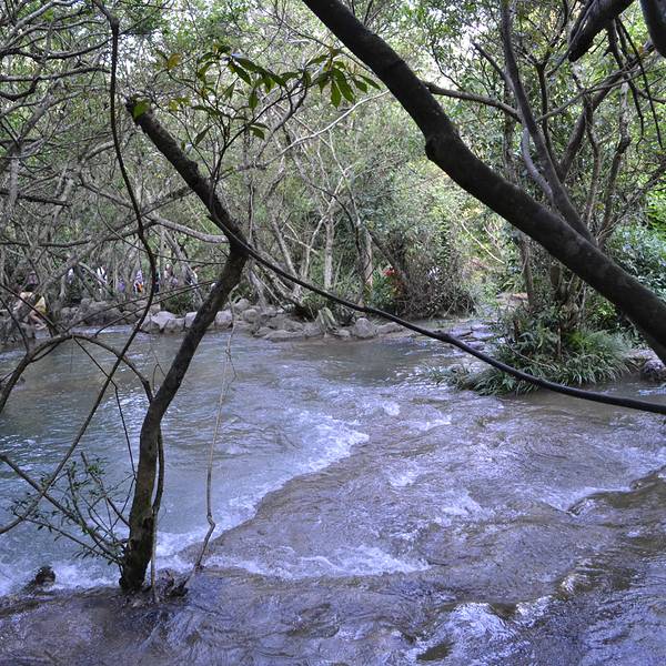游人手攀曳藤、足踏盘根,沿河穿行,踩瀑践浪,有惊无险而趣味无穷。也是别有一番风味感觉的哦水上森林中,石上盘根错节,枝间古藤缠绕。游人手攀曳藤、足踏盘根,沿河穿行,踩瀑践浪,有惊无险而趣味无穷。也是别有一番风味感觉的哦