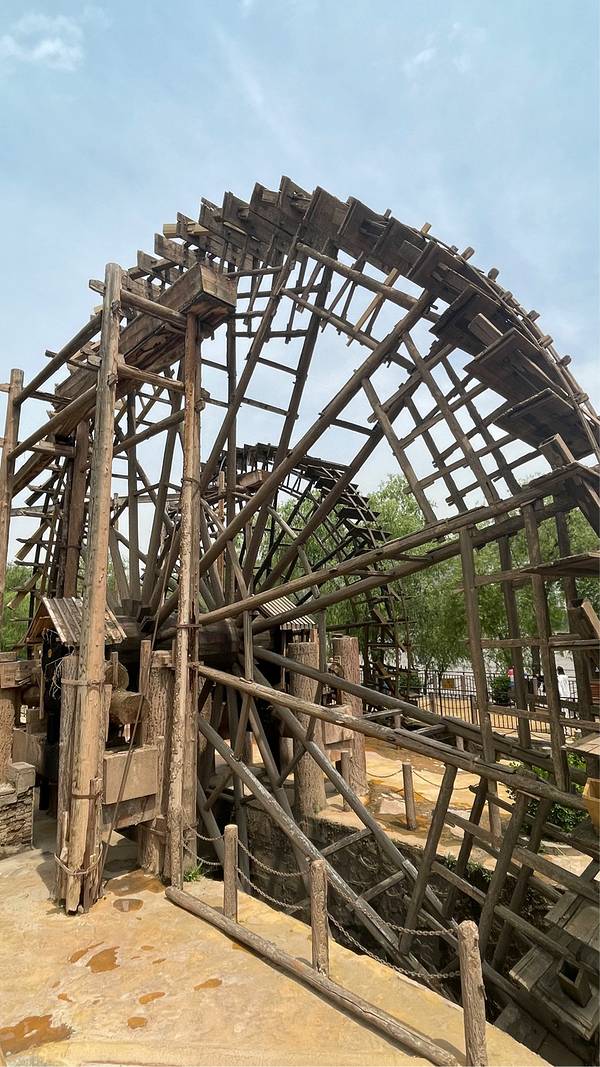 沿着黄河一路向酒店方向溜达,偶遇水车园,兰州水车园,甘肃兰州的四A级景区,百里黄河风情线上最具兰州地方特色的景点之一。水车园再现了古老的水利机械水车,展示了水车的历史和原理,水车是兰州黄河沿岸最古老的提灌工具,通过水流推动转动,实现灌溉功能。
