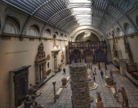 维多利亚与艾尔伯特博物馆专门展出应用及装饰艺术作品,展品十分丰富。以欧洲展品居多,也有中国、日本、印度和伊斯兰艺术的收藏,包括玻璃制品、瓷器、纺织品、金属制品、珠宝等,值得花一整天细细研究。 历史背景 博物馆创立于1852年,为在伦敦举行的第一届万国博览会而建,并以维多利亚女王和她丈夫的名字命名。这里并不以“古老”或者“珍稀”等传统标准来进行展品收藏,而是强调社会、生活和装饰意义,因此吸引了许多设计师、艺术爱好者和学生等人群流连于此,一般游客也会觉得趣味十足。此外,时常举办的临时特展及每周五晚的主题活动花样繁多,不同游客都能找到兴趣点。 参观博物馆 博物馆建筑外观上布满了华丽的雕塑,典雅精致。从正门进去,大厅上方悬挂着切胡利的大型玻璃作品,宛如一簇妖娆而华贵的藤蔓。参观跨两层的玻璃展厅,可以欣赏到里诺、威廉·莫里斯、安东尼·勒彼里耶等世界知名玻璃艺术家的作品,变化多端的造型、艳丽的色彩、精湛的吹制工艺都令人惊叹,堪称视觉享受;就连楼层间的楼梯也由玻璃打造,相当纯粹。你还能了解由埃及到罗马,以及西方中世纪以来玻璃艺术的演变。 #陶瓷展厅# 离开玻璃展厅,再上楼就是陶瓷展厅,接连有六七个大厅,展示着从各国古代艺术到现代陶艺的诸多珍品,或是小巧精致,或是前卫夸张,令人遐想万分;其中还有来自中国的青花瓷,精美绝伦。 #家具展厅# 家具展厅也是异彩丰呈,展示的作品有的简约而不失功能性,有的复古华丽、赏心悦目,有的还配有设计师的草图。在参观过程中经常会碰到当地学生在此临摹设计作品,很有意思。 #仿制品展厅和铁艺长廊# 博物馆中还有许多特别的地方值得探索,例如一楼开设的仿制品展厅,陈列着各种雕塑和建筑装饰的石膏仿制品,包括巨大的古罗马图拉真之柱,雕刻的精致程度令人赞叹;你还能找到大卫雕像等名作。又如二楼的铁艺长廊,从造型优雅的门、栅栏到精巧的勺子、结构复杂的秘密箱、形态各异的锁等,真叫人大开眼界。还有以时尚为主题的时装设计展厅等。 #剧院展厅# 收录了英国戏剧表演相关的大量藏品,包括了戏剧、歌剧、音乐剧、木偶戏等众多表演形式,集中展示了戏服、手稿、剧本、海报、录像带等等众多记录曾经舞台前后的过往,能让那些消逝的岁月中的表演再一次生动地展现在你的面前。 #精彩藏品推荐# 此外,博物馆官方也给出了一些不容错过的藏品推荐,如拉斐尔的手绘设计图《捕鱼的神迹》、堆砌的抽屉《记忆永存》、安东尼奥·卡诺瓦创作的雕塑《三美神》、威廉·莫里斯设计的印花棉《草莓贼》等。 约克博物馆花园 如果你逛累了,在博物馆的中心花园里有另一片天地,文艺复兴风格的红砖建筑、浅水池一周围坐着的大人和孩童,以及蓝天下宁静的氛围都使人沉醉。正对花园的红砖建筑里开设了三个餐厅,其中一个是由威廉·莫里斯设计的,橄榄图案的墙壁以及深色的涂料营造出一种绿意盎然、枝繁叶茂的室内效果,坐下来吃吃蛋糕、曲奇非常舒适。 精彩的临时展 博物馆的临时展出是这里的又一特色,如此前举办过的中国古代绘画展、意大利时尚展等,都吸引了不少游客参观。看特展需单独购票,要了解近期的特展安排参见官网。 购买纪念品 博物馆纪念品商店售卖的纪念品十分丰富且特色鲜明,如早期好莱坞偶像风格的设计师珠宝、以文艺复兴或现代主义为主题的工艺品、古旧的圣诞贺卡、时尚服饰等。而每周五晚上的主题活动也常伴随着限量纪念品的发售。 每周五晚博物馆会延长开放时间,届时常举行特殊的主题活动(Friday Lates),如DJ之夜、舞蹈、美食品鉴、专人座谈等体验活动,非常精彩,游客可以免费参加。