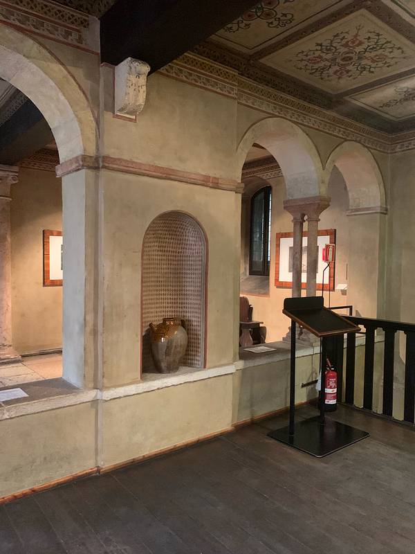 位于意大利北部的维罗纳是莎士比亚笔下罗密欧与朱丽叶的故乡。朱丽叶故居位于市中心香草广场附近,曾经归维罗纳望族卡普雷提家族所有。 朱丽叶故居是一幢建于13世纪的古老建筑,高墙大院,圆形拱门。进入故居庭院参观免费,但若进去二楼参观则需付费。步入大门后,进入一座古香古色的院落,三面是墙垣房屋,三层高,鹅卵石的地面,土黄褐色的墙上挂着着青青郁郁的枝藤。 大门正面靠院墙是比朱丽叶的青铜塑像,据传,手摸朱丽叶的右乳许愿,便可得到她真诚的祝福,使有情人终成眷属。院子的右边,抬头便可看到举世闻名的“朱丽叶的阳台”。阳台不大,外面雕有简单的图案,两边可见两扇小窗。罗密欧就是在这个阳台下与朱丽叶密密幽会,互诉衷肠,并从这个阳台爬上去,与朱丽叶私定终身。有兴趣的话你可以另付费用进入阳台留影。 另外,庭院内还有一座有名的“爱墙”,就在阳台的下方,墙上密密麻麻写满贴满了各种语言的两个连在一起的名字,用心圈在一起,用丘比特的箭穿在一起,用各种颜色和图案装饰起来,据说在墙上把两个相爱的人的名字写在一起就可使他们的爱情天长地久。 进入故居的接待厅,墙上挂着壁画,墙角摆放着莎士比亚的头像雕塑。楼梯旁摆放着一个醒目的支架,上面是一本木质的大大的打开的书,左页是1936年黑白电影“罗密欧与朱丽叶”剧照,两人甜密地依偎在一起,右页是莎翁剧中两人互倾衷情的对白。这本打开的书引导着我们浏览了朱丽叶生活过的各个房间。根据不同房间的主题,打开书中的情节也一路延伸,化妆舞会、一见钟情、卧室相会、神父证婚、朱丽叶抗婚、墓地殉情等,有兴趣的可以看一下。 沿着楼梯上去,就进入故居的内部。楼上开放的房间有十几间,配有床、桌椅、柜子和其他简单的家具和摆设,色彩形态古朴庄重。二楼厅里中央有一圈玻璃桌柜,里面摆着各个时期知名画家根据莎士比亚“罗密欧与朱丽叶”的剧情所绘制的图画。 故居门口的大街上有很多小店铺,都是售卖罗密欧与朱丽叶的纪念品,其中有一家专门在围裙上绣字的店铺。店里摆着各种围裙,游客可任意挑选,店家会按游客的意愿在围裙上绣字,多是绣恋人的名字,或表达爱意。一件围裙加上绣字价格在15到20欧元,喜欢的话可以买一件留作纪念。