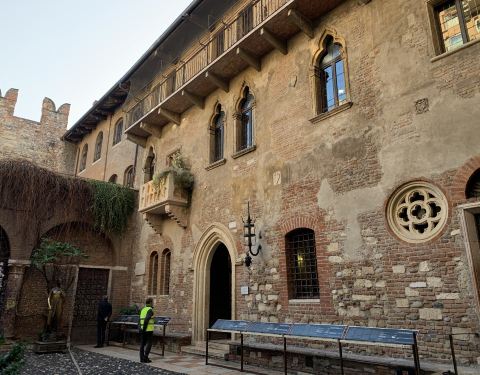 维罗纳城内仍保留着朱丽叶的故居,故居中“朱丽叶的阳台”每年吸...莎士比亚剧作《罗密欧与朱丽叶》的故事发生在维罗纳,罗密欧曾在朱丽叶家的阳台向朱丽叶求爱,这段悲剧爱情故事和朱丽叶的阳台一起留给了后世。