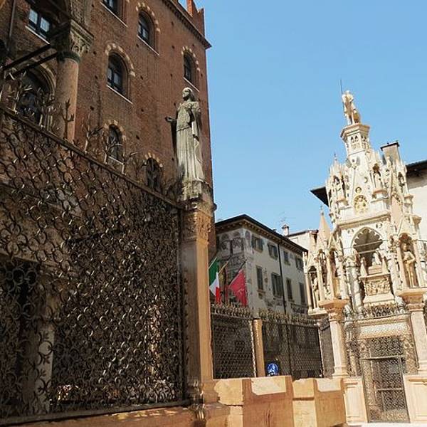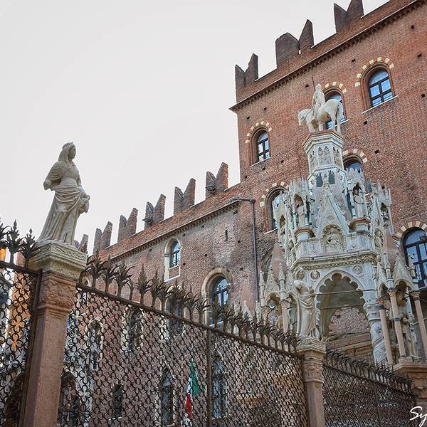 Scaligeri宫曾经是上文提到过的显赫一时的斯卡拉家族的主要居所,广场北端的建筑理事厅(Loggia del Consiglio)也附属于这里,曾经是市政厅。它被认为是维罗纳最优秀的文艺复兴风格建筑。广场中间有一座但丁雕像。
