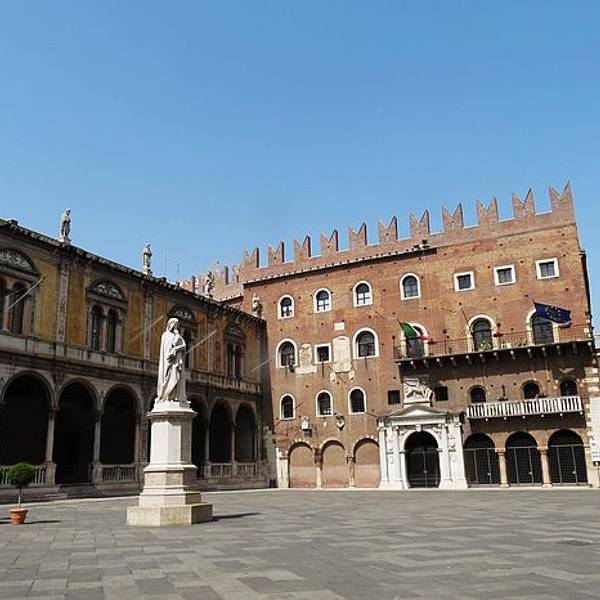 它是维罗纳最优秀的文艺复兴风格建筑,广场中间有一座但丁雕像。
