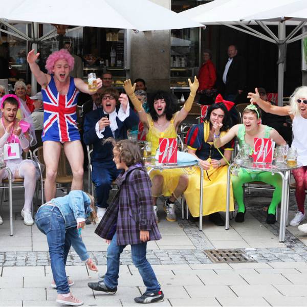 返回玛丽亚广场,一群男扮女装的街头艺人起哄的对着每个给他们钱的游客,说着玩笑的话,拉过游客拍照留影