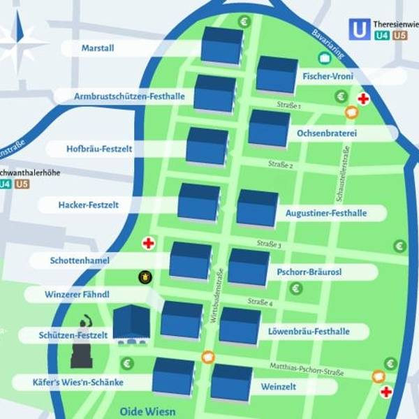 特蕾西娅草坪是慕尼黑啤酒节的官方举办地点,占地420000平方米。草坪得名于路德维希一世的妻子特蕾西娅,他们于1810年在此举行婚礼。此后,慕尼黑啤酒节每年都在此举行,以庆祝这一事件。