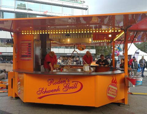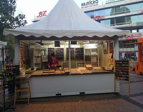 世界喷泉就位于著名的威廉教堂旁边,它属于一个现代的建筑。然后旁边是一个小型的广场,广场内有很多饮食摊位,供人们休闲娱乐以及喝咖啡休息,旁边有一个大的欧洲购物中心。