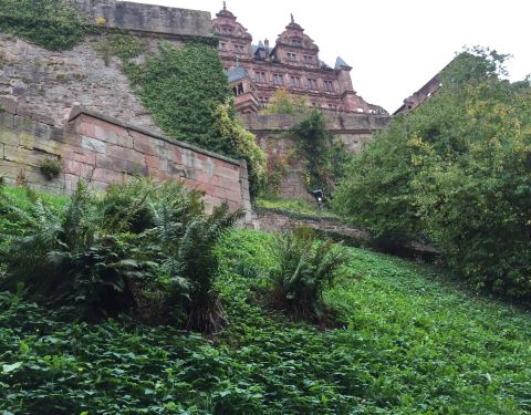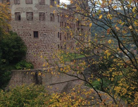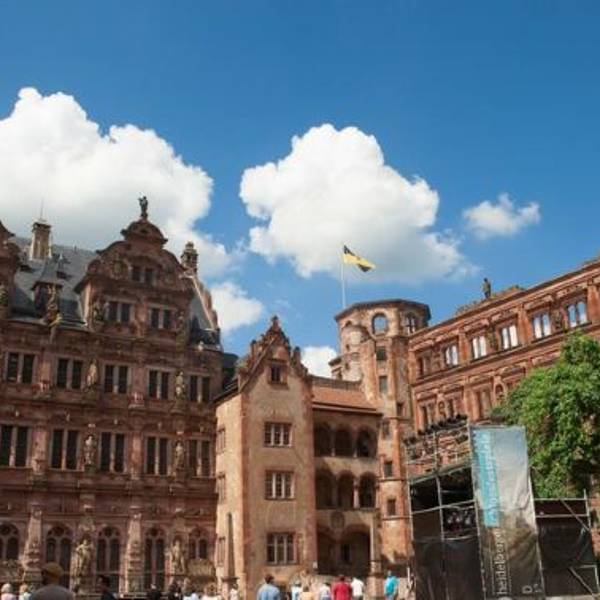 穿过海德堡老城区,从粮食广场开始,通过一段上行绿荫道,便可以...整座城市最著名的海德堡城堡废墟高耸于老城区之上。这座城堡建筑历经 400多年,由从哥特到文艺复兴盛期等各种风格的壁垒、附属建筑和宫殿组成。