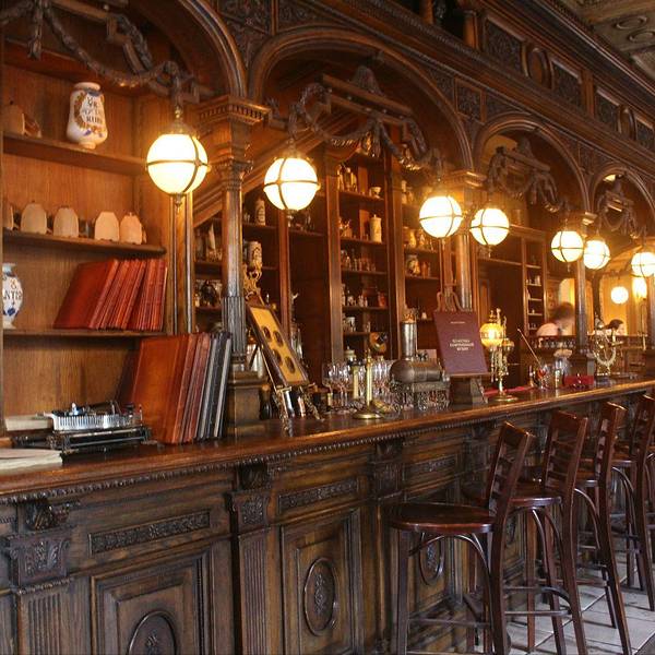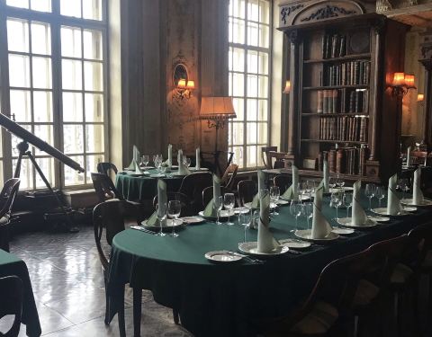 普希金咖啡馆是由图书馆改造而成的餐厅。咖啡馆有二层楼,一楼名为”药房”,供应标准菜单;二楼名叫“藏书馆”,需要提前预定。