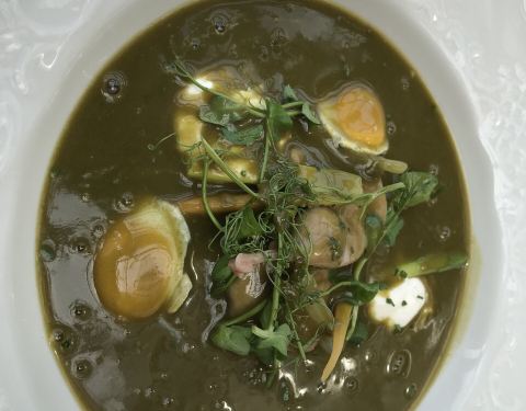 Fried Duck Breast, Cherry Risotto, Foie Gras Raviolis In Orange Glaze, Cherry Sauce