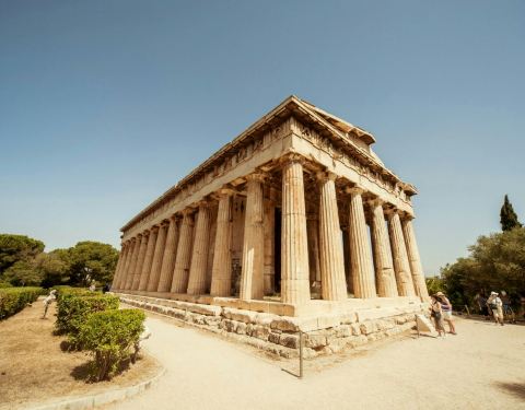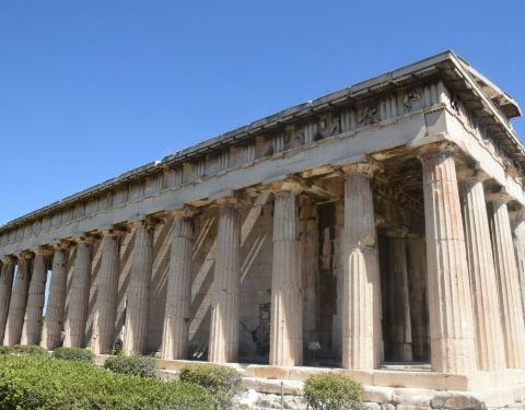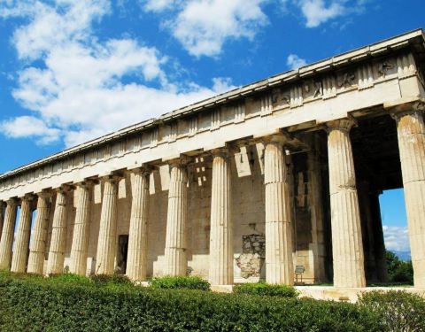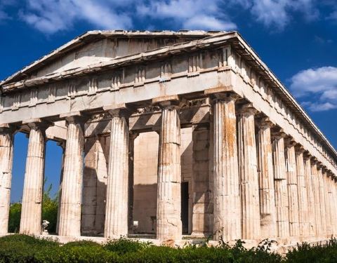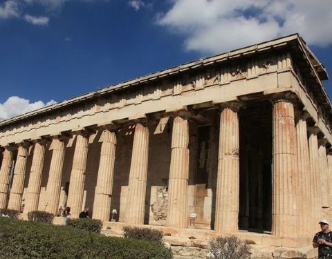 神殿一共有34个圆柱,屋顶周围刻画的是古希腊的九个著名神话去希腊一定要去看看赫菲斯托斯神庙,这是希腊所有神庙中保存最完整的神庙了,里面供奉着火神和匠神。神殿一共有34个圆柱,屋顶周围刻画的是古希腊的九个著名神话