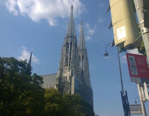 约瑟夫一世在此遇刺,救了他的居然是个屠夫,为了感恩,皇帝下令建了这座教堂,名为感恩教堂因为靠近维也纳大学,远远的看见那两座尖塔就走过去了。据说弗兰茨·约瑟夫一世在此遇刺,救了他的居然是个屠夫,为了感恩,皇帝下令建了这座教堂,名为感恩教堂