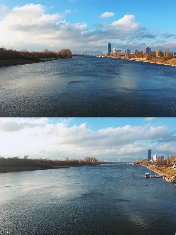 ▫️在维也纳旅程的尾声,来到多瑙河边看着美景发呆,这条孕育了这座音乐之城的河流,蔚蓝得让人惊叹,水天一色,水流时缓时急,超级适合在河边听歌或作画的。