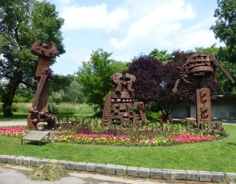 公园在维也纳联合国城的北面,这里很幽静,有树、草坪和一些雕塑,还有一个不大的湖,塔下是一个高尔夫球场,花十几欧元可以登塔远眺。园内几乎没有游人,环形小火车上只坐了三四个人,偶尔可以看见遛狗的居民和滑滑板的孩子们。