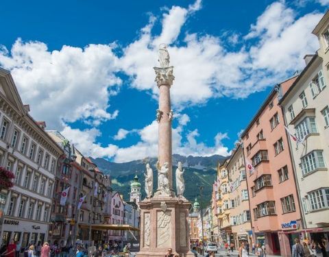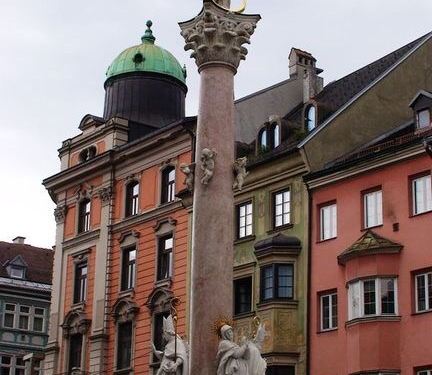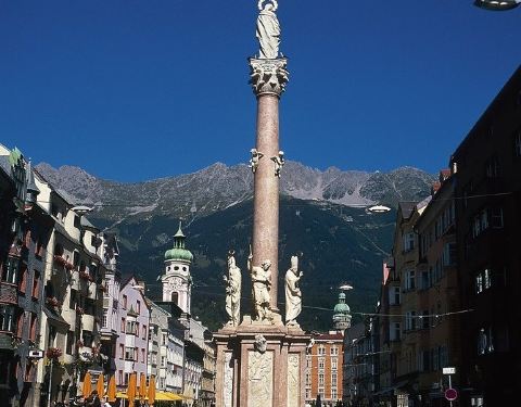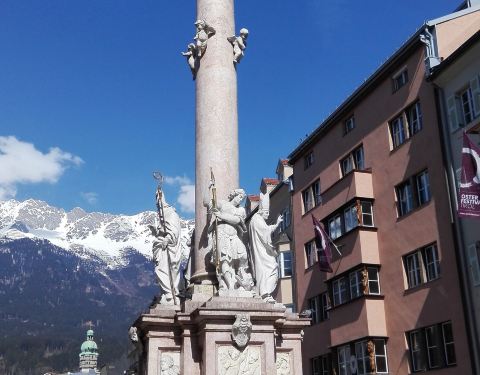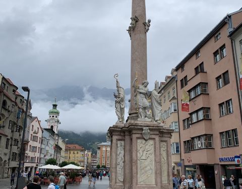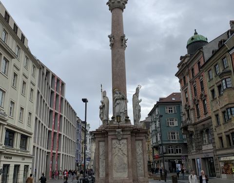 ...在地因斯布鲁克游玩,柱子位于一条步行街上,二边都是商店,走到尽头就是阿尔卑斯山脉,很漂亮,喜欢女儿去奥地利求学,正好去施华诺世其工厂所在地因斯布鲁克游玩,柱子位于一条步行街上,二边都是商店,走到尽头就是阿尔卑斯山脉,很漂亮,喜欢