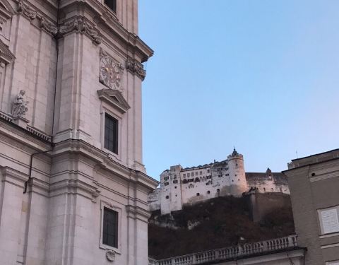 ...想到主教在萨尔茨堡这个地方这么有权有势,不仅有宫殿,还有花园和城堡,主教宫非常的宏伟,规模很大这里就是萨尔茨堡主教的宫殿,没想到主教在萨尔茨堡这个地方这么有权有势,不仅有宫殿,还有花园和城堡,主教宫非常的宏伟,规模很大。