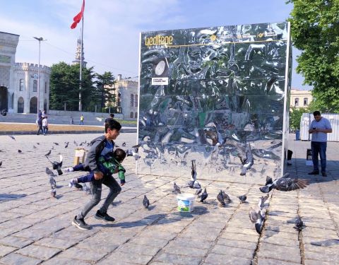 后来碰到可爱的一家人,被他们拉着合影,弟弟的眼睛圆溜溜的,还有长长的眼睫毛,萌化我,怎么能这么可爱本来想去旁边的奴鲁奥斯玛尼耶清真寺(Nuruosmaniye Mosque),听说有巴洛克风格的水池,特别喜欢,后来担心赶不上坐日落的游轮,只好放弃了 展开