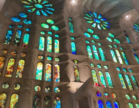 一定要晴天去,感受阳光从不同颜色的玻璃照进来后梦幻般的光彩!明明是个教堂,却幻化成梦境一般进入圣家堂才能体会到高迪的鬼才设计天赋!明明是个教堂,却幻化成梦境一般。一定要晴天去,感受阳光从不同颜色的玻璃照进来后梦幻般的光彩!