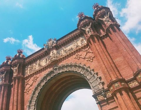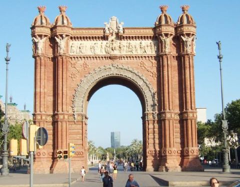 ...体都是用红色的砖块堆砌而成的,门顶上一面刻着欢迎来到巴塞罗那,另一面却刻着报应,也不知道为什么这个凯旋门是摩尔复兴风格的建筑,整体都是用红色的砖块堆砌而成的,门顶上一面刻着欢迎来到巴塞罗那,另一面却刻着报应,也不知道为什么。