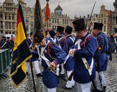 皇家广场,是布鲁塞尔中心地带,这里的巴洛克风格的确充满皇家气派,在大广场经常会举办各类活动,这次刚好遇到比利时独立日庆祝活动,规模非常盛大,活动人员穿上比利时的特色服装,还有中世纪装扮的人物,吹奏乐器巡游,派送面包等,整个巡游活动很热闹,可以参与其中感受比利时人的热情。