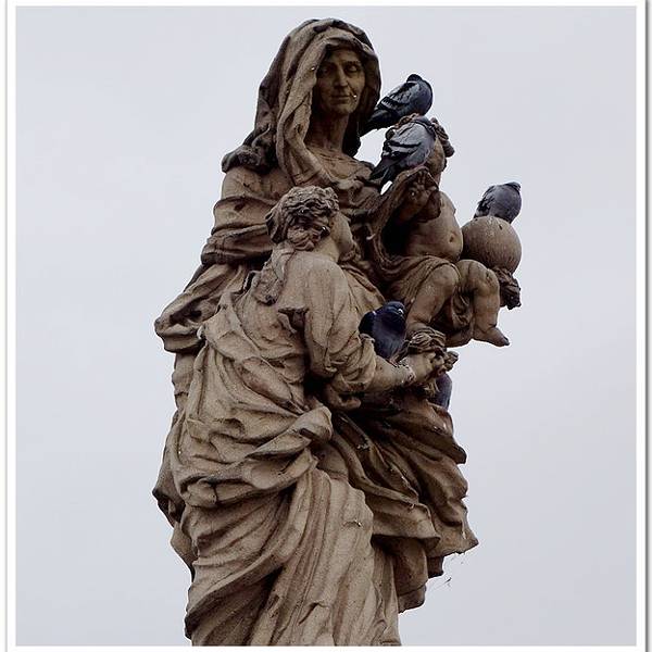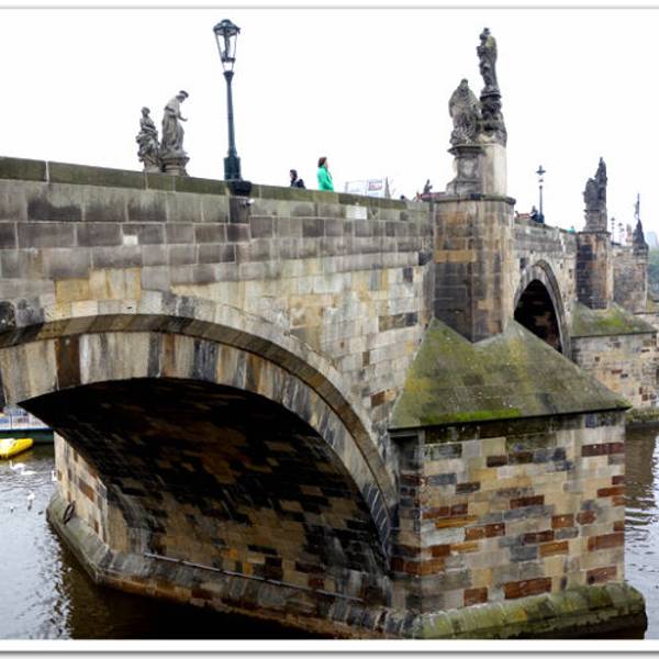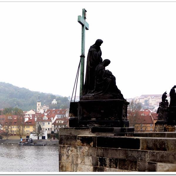 查理大桥是捷克首都布拉格市内一座跨越伏尔塔瓦河的著名的历史桥梁。它始建于1357年,距今已有650 年历史。是布拉格老城广场与布拉格城堡之间的唯一通道,国王加冕都要从这座桥上走过,到布拉格城堡接受教皇的祝福。查理桥以其悠久的历史和独特的建筑艺术成为捷克较负盛名的古迹之一。桥的一端入口处耸立着查理四世的全身雕像,两侧是带有巴洛克式浮雕的哥特式门楼。桥两侧石栏杆上有30座雕像,为天主教圣徒和保护神,造型有女神、武士、人面兽身和兽面人身像等。其中桥右侧的第8尊圣约翰雕像,是查理桥的守护者,围栏中间刻着一个金色十字架位置,就是当年圣约翰从桥上被扔下的地点。这些雕像原件已经保存在博物馆内,大部分都已换成复制品。