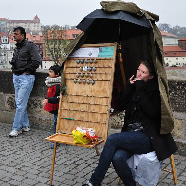 桥下的街道上面,都是艺术家亦或是街头艺人在表演,满街都是油画、各种各样的小饰品,或者是弹唱当地曲调的年轻人。