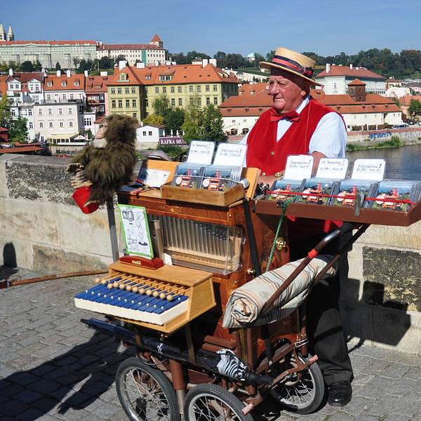 其他季节,去这座桥,也是不一样的美。桥头有个白头发红衣服的老爷爷,在那里表演好些年了。我每一次去布拉格,都遇到他在那边,感觉他已经是查理桥的一部分。 展开