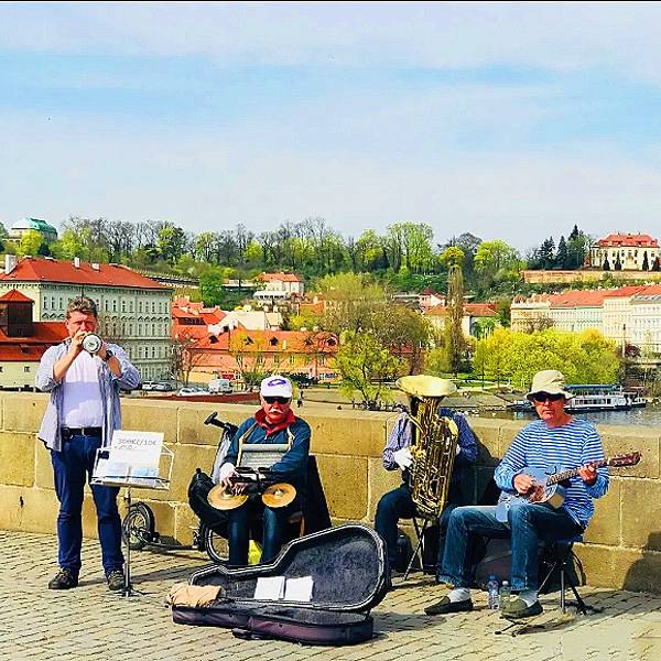 查理大桥桥面很宽,但桥上的行人来来往往,热闹非凡。在桥上可以观赏到艺术家的表演,一些艺人还组成了小乐队为游人演奏乐曲,看到中国的游客走近,马上演奏起中国乐曲,让游客感到格外亲切,除此之外还有好多手工艺创作表演,查理大桥已经成为布拉格艺术的重要展示场所,所以强烈建议大家不要跟团游,匆匆忙忙的走一趟你没有办法站下来听一听乐手们路边表演,逛一逛各种手工饰品小摊贩,看一看街头艺术家的即兴创作。如果有机会你们一定一定要赶在可以一个人迎着朝阳时和查理大桥拍照!因为瑰丽无比的圣维特大教堂就能清楚的伫立在不远处的布拉格城堡区。