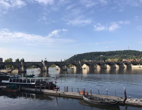 大桥两边吃的特别多,也有很多餐厅,里面有好吃的大猪肘和黑啤,但我最喜欢的还是烤面包卷,非常好吃,也算是这里的特色。当热乎乎的面包卷,挤上冰冰甜甜的奶油,一口下去真的感到满满的幸福。离大桥不远的地方有一片天鹅聚集的地方,这里的天鹅非常友好,不管你手上有没有吃的,天鹅都会跟着你,弄得你不给它们喂食都感觉过意不去。当你累了的时候可以去游船码头乘坐游船,14欧元可游伏尔塔瓦河50分钟,你可以一边叫上一杯啤酒一边在游船上欣赏两岸风景,还有比这更惬意的生活吗? 展开