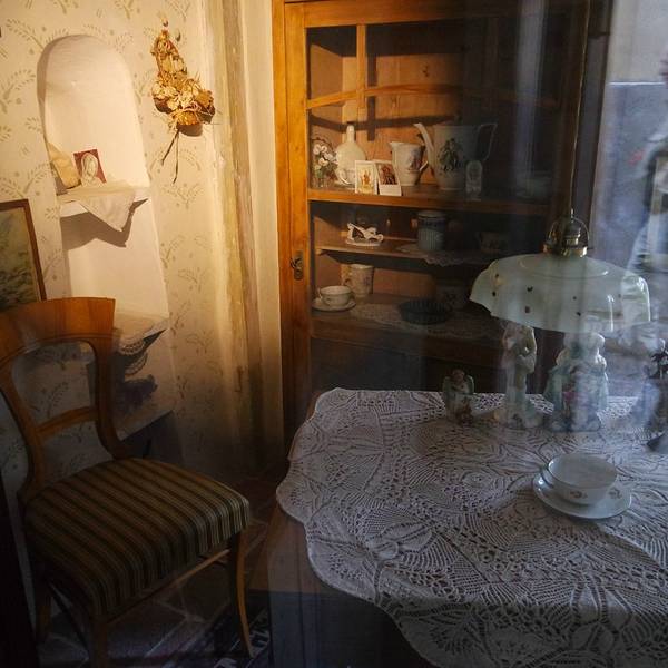 仿佛当年的情景就在眼前。服装多为棉布制作,配以蕾丝刺绣同样是这里的主题裁缝的店,其实现在的服装很多也是复古当年的。捷克感觉天神就喜欢色彩,从全国每地都有的墙绘,到自己房间的装饰,乃至衣服的斑斓,展示这这里的人生活态度。玻璃陶瓷都是捷克的特色厨房一角,仿佛回到了天朝。在这种环境下用餐,感觉都能念诗了。【小店】