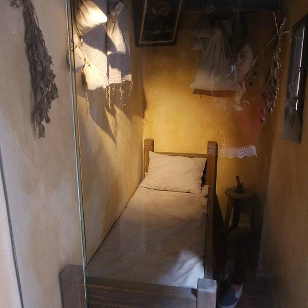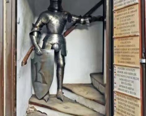 狮子是当时的国徽连盾牌都有手绘哈哈酷刑展示,真的是每个国家都一样啊,变成俘虏那就是悲剧了。【卡夫卡故居】我挺喜欢这种展示方式,生动的展示当年的环境,木质的小床,窄小的房间,复旧的墙面。