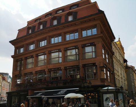 就在老城广场去火药塔的路上。虽然是比较现代的一幢房子,但是与布拉格古典的街道融合得很完美