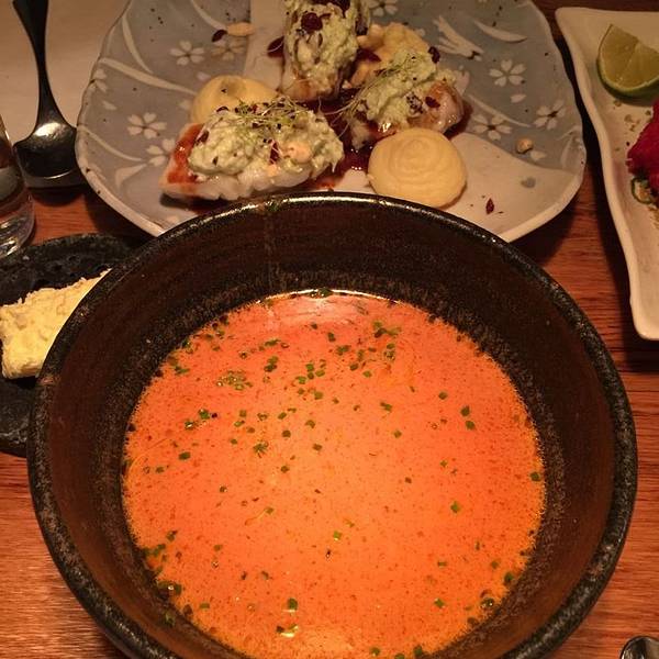 逛着逛着到了中午,无意发现一家餐馆,是lp上推荐的fishmarket,到到无线排名全雷克雅未克第二名,惊到,这是本次在冰岛排名靠前并且最终吃上的餐馆。lp上介绍这家餐馆“善于将冰岛海鲜和远东风味融合起来,食材强调当地出产,来自赫本的龙虾(正好没吃上),布雷扎湾的大比目鱼,还有芒果、叶子、沙爹酱这些调料辅佐”,进门一看,竹林人家啊,左边还有寿司台,根据名字有趣程度点了一盆叫volcano的寿司、rock shrimp的海鲜、鳕鱼料理、三文鱼刺身和龙虾汤,结果,真的非常好吃,食材真的极新鲜,严重推荐!
