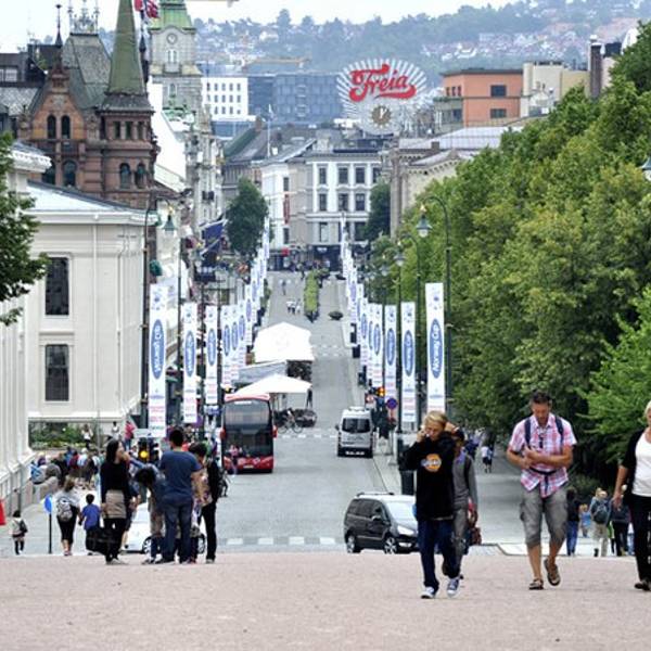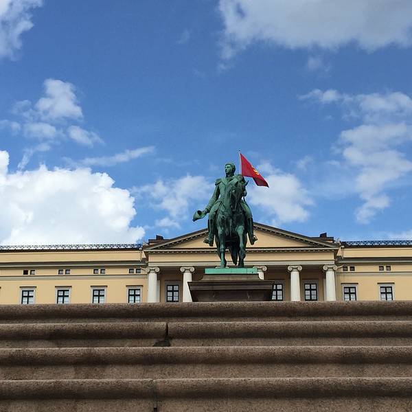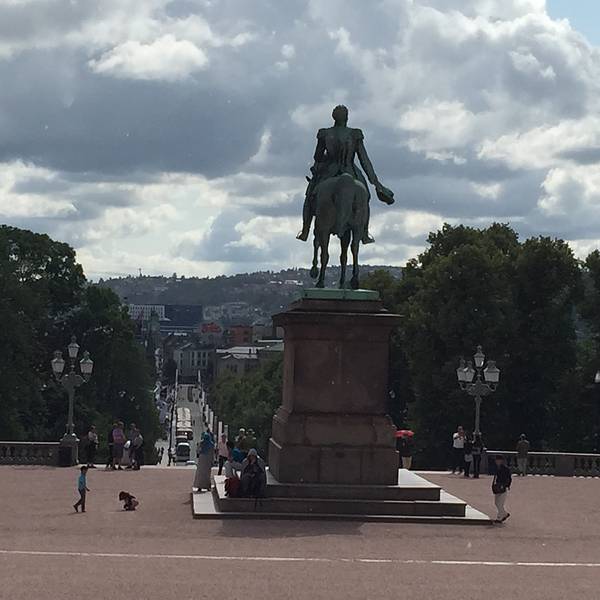 【步行】从中央火车站沿着卡尔·约翰大街(Karl Johans gate)一直走到头即到皇宫