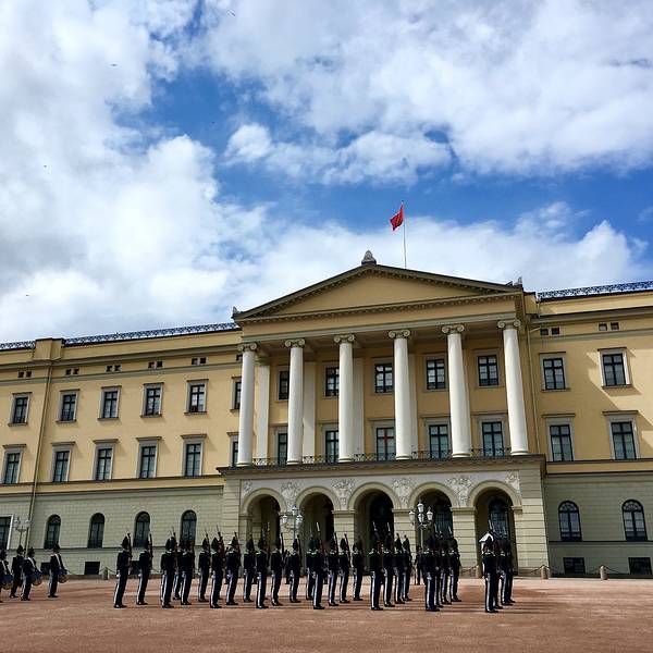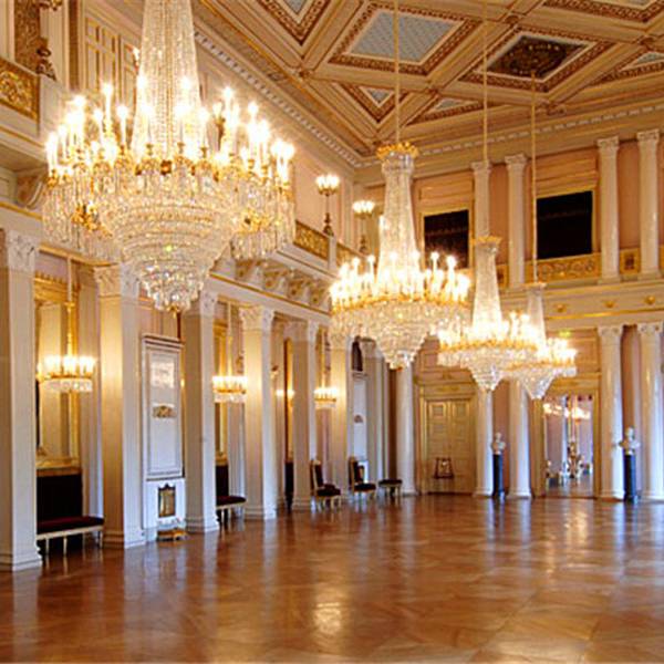 奥斯陆王宫是挪威皇室的官方居所,是挪威最著名的标志性建筑之一,挪威历史的见证者。19世纪上半叶王宫作为挪威和瑞典国王卡尔十四世·约翰的居所建立起来,既是国王王后的居所,也挪威君主处理日常事务的地方。地处一片高地,内部共有173间房间,装饰十分高贵豪华。有专门的接待室,主楼外还有皇家花园和皇室广场。花园内绿树成荫小径通幽,还有几座精美的雕塑。皇室广场是挪威最大的庆典广场,对面是奥斯陆市中心的主要街道--卡尔·约翰大街。王宫是哈林尔国王的办公地。环绕王宫的是330亩的林地和公园,穿过这里的公共大道通往市中心的商业区。皇宫只在夏季对公众开放,必须加入向导团才可以参观。