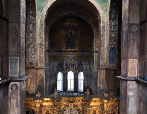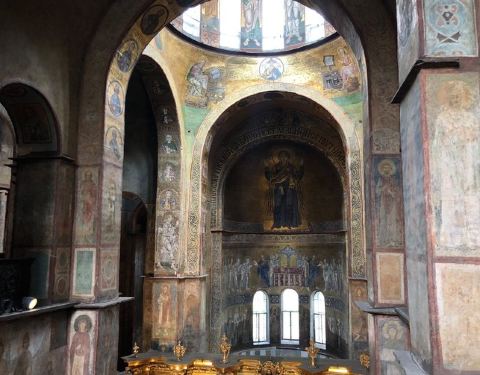 基辅圣索菲亚大教堂是一座历史悠久的教堂,建筑风格为拜占庭风格,内部镶嵌壁画非常漂亮。如果您来来乌克兰基辅旅游,别忘去参观圣索菲亚大教堂。
