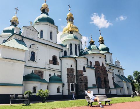 这是9世纪基辅罗斯的现存最古老的以及正常开放的教堂,即智者雅罗斯拉夫王子的居住地。我们还参观了钟楼的全景,基辅的一个主要广场以及博格丹·赫梅利尼茨基纪念碑。