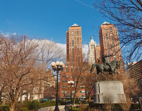 联合广场是曼哈顿区的交通枢纽,这里是几条主要街道和电车交汇处,广场上有乔治华盛顿骑马的雕像联合广场是曼哈顿区的交通枢纽,这里是几条主要街道和电车交汇处,广场上有乔治华盛顿骑马的雕像。周边还有农贸市场,很有意思。
