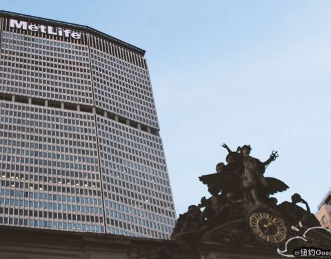 纽约中央车站背后就是大都会人寿的大楼。非常醒目。面对中央车站和过街天桥,就可以看到大楼三段式的结构。公司的正门入口在中央车站的另一面。从中央车站里面也可以进入,有一个出口,上面标注可以直通大楼里面...