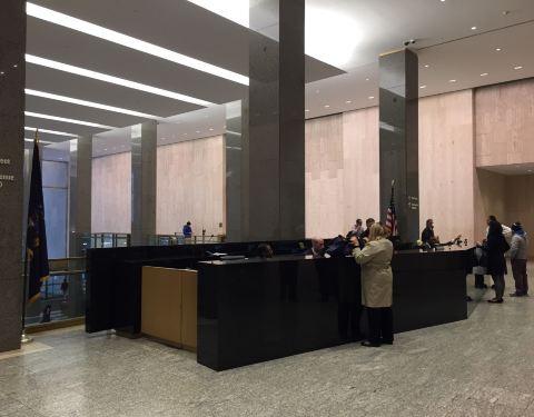 纽约中央车站背后就是大都会人寿的大楼。非常醒目。面对中央车站和过街天桥,就可以看到大楼三段式的结构。公司的正门入口在中央车站的另一面。从中央车站里面也可以进入,有一个出口,上面标注可以直通大楼里面。开放的一二层大厅,在这里可以联系前台接待。其它地方就是办公区了,要刷门禁卡才能进入。