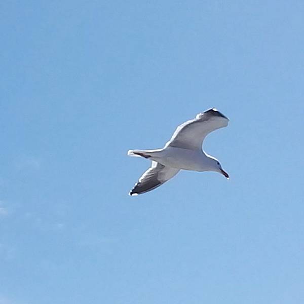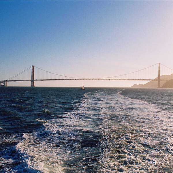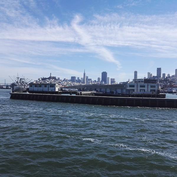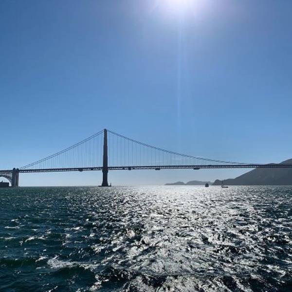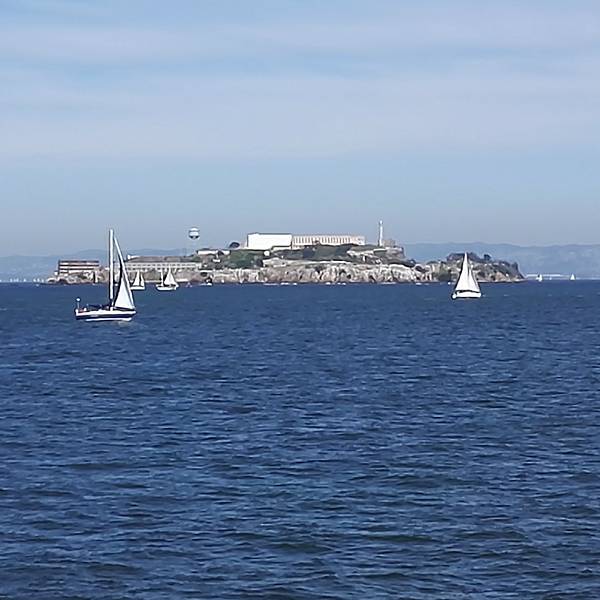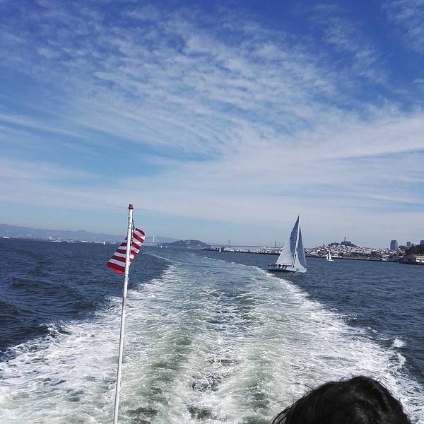 在渔人码头可以直接坐游轮观看金门大桥,3月的旧金山天空湛蓝,海上观看两侧山脉和建筑,高速公路上疾驰的车辆,向前远望金门大桥,壮伟无比。抬头还能看到海鸥飞过,船上大人小孩嬉戏的声音,令人兴致盎然,站在船头迎着海风闭上双眼驰骋想象,真有一种泰坦尼克号男女主角那个造型的感觉。