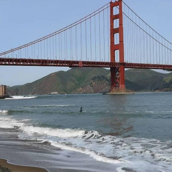 旧金山必去景点之一,金门大桥非常壮观,步行穿越桥身,感觉置身历史和现实的时空隧道,两岸风景优美...旧金山必去景点之一,金门大桥非常壮观,步行穿越桥身,感觉置身历史和现实的时空隧道,两岸风景优美,冲浪者在浪尖展示优美身姿,山上鲜花漫山遍野,在江边徒步可以走到艺术宫,不可错过。