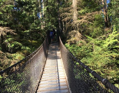 地方很大,毕竟是免费开放的公园,也没有大门,下到土路上面稍微走一点就能看到吊桥我们乘坐229路公车来到林恩峡谷公园,林恩峡谷公园早上7点开门,晚上8点关门。地方很大,毕竟是免费开放的公园,也没有大门,下到土路上面稍微走一点就能看到吊桥。