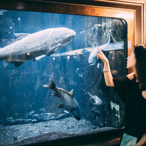 参观世界上较大的室内水族馆,与白鲸、海豚、海狮、企鹅等海洋动物近距离互动。